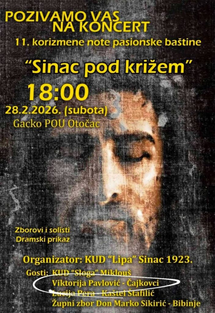 Učenica 8.a razreda naše škole, Viktorija Pavlović, sudjelovala je na Korizmenom koncertu koji se održao u Gackom pučkom otvorenom učilištu u Otočcu, u subotu, 28. veljače 2026. godine u 18 sati.
