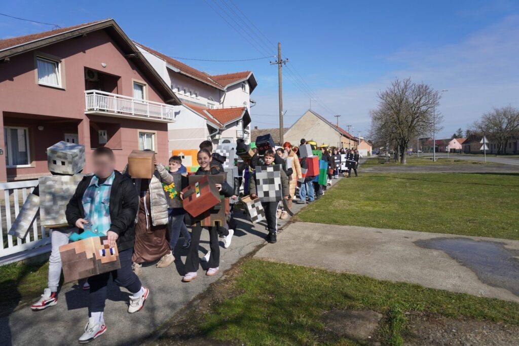 Šarena i razigrana povorka prošetala je selom zajedno s mališanima iz Dječjeg vrtića Zvrk. Kod Vatrogasnog doma učenici su se kratko okrijepili, a potom su se vratili u školu gdje je uslijedilo predstavljanje maski.